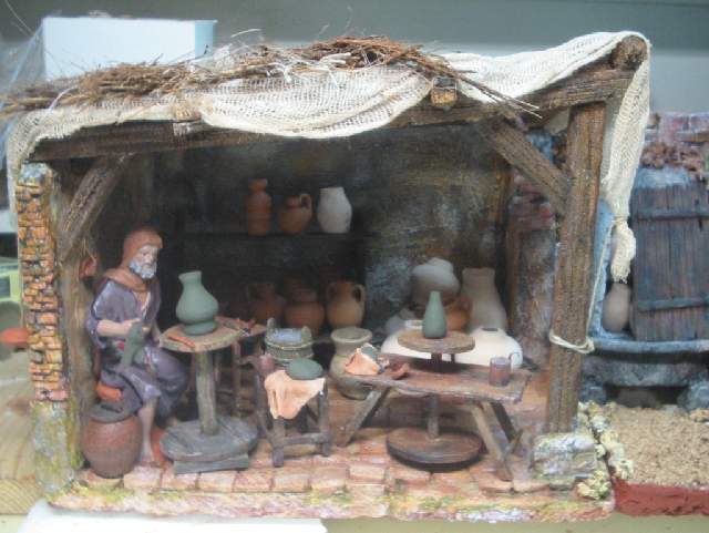 ciao, ci siamo, mi sono deciso ad abbandonare le micro costruzioni ed ho iniziato...un nuovo lavoro- avendo a disposizione le statue della coll. Del Prado-J.L. Mayo sto cercando di riprodurre delle ambientazioni dell'epoca utilizzando questi pesonaggi-questo è il primo lavoro-da teminare e rifinire- chiedo un consiglio per la copertura della bottega avrei pensato ad un telo steso con il solito gioco ondulato, tipico orientale....che ne pensate??? queste sono le prime foto