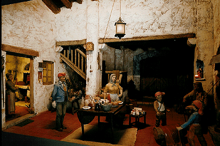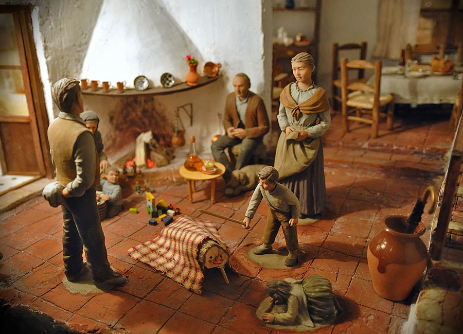 sono daccordo con te Paola, ma c'č una differenza: qui in Italia, tutti i diorami della vigilia bene o male rappresentano la stessa scena: l'allestimento del presepe! quindi bene o male l'allestimento e l'ambientazione č sempre lo stesso, che sia "copiati" o no! in Spagna, il "caga tio" non č l'allestimento del presepe, ma un altra scena, pių o meno tradotto č "l'apertura dei regali": nel tronco che vedi (chiamato tiō) ci sono dentro i regali e il bambino con il bastone lo rompe per vedere il contenuto! quindi non č sempre detto che sia ambientato come quelle italiane  |