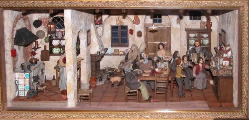ciao sono Paola, vi faccio vedere il presepe che ho fatto nel 2008 Vigilia di Natale di una famiglia lucchese ambientata negli anni 50 quė ci sono io che sistemo ..... mmm che acquolina quella cantina!!!! Immagine: