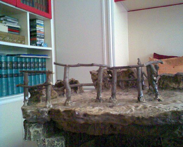 un consiglio quando fai le rocce cerca di farle più irregolari.... ovvero sagomando più inregolarmente i pezzi di polistirolo.. perchè dalle foto si vede che sono troppo regolari |