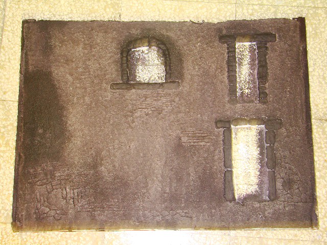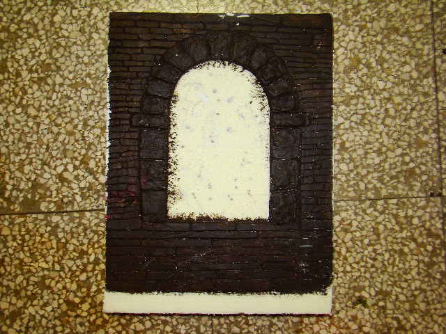 ciao roslot.it,devi schiarire un sacco...con terra"ombra"naturale e bianco,non terra di siena nat.è troppo rossa man mano aggiungi il bianco... nelle travi??...sopra le porte devono essere di un pezzo solo,così come le hai fatte ,in realtà non esistono altrimenti crollerebbero....  ps.la prossima volta che fai il palestinese..usa il gesso,segatura e caffè(lo scarto della moka,quando è asciutto)vedrai che quando è asciugato il tutto avrai già i muri pronti,serve solo qualke ritocco...buon lavoro!!!!