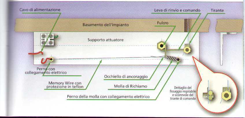 Tenete presente che tale filo non va mai saldato, ma deve venire crimpato con appositi gancetti forniti a corredo. Il filo fa fissato su un supporto isolante (io utilizzo degli angolari in plastica). Il filo raggiunge durante il funzionamento temperature elevate. Ho allegato delle immagini di esempio di meccanismo e rimango a disposizione per delucidazioni in merito; buon lavoro a tutti.