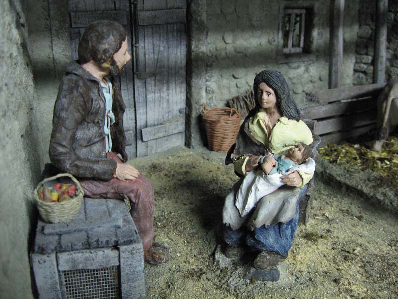 Posto alcune foto del diorama che ho realizzato quest’anno. L’ho intitolato “Ora siamo in tre” Mi sono immaginato la Sacra Famiglia da sola all’interno della stalla. Maria e Giuseppe che si guardano con quello sguardo che hanno i genitori alla nascita di un figlio. Uno sguardo ricco di felicità ma anche (nel caso di una famiglia povera) ricco di preoccupazione per la nuova bocca da sfamare. E il pensiero “ora siamo in tre” racchiude entrambi i significati