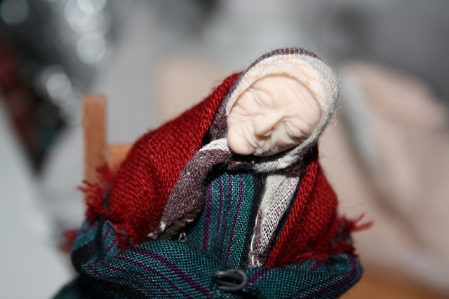 grazie davvero! sto usando la scala 1/12 (tipica della casa delle bambole, perchè in effetti il mio interesse parte da lì...). La nonnina dovrebbe essere alta 13-14cm, lo schienale della sedia è alto 8,5cm.