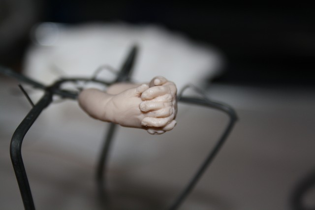 ciao e grazie! Ho usato super sculpey living doll. Aggiungo le foto delle mani. Non le ho ancora cotte... volevo farle incrociate ma forse non rendono molto...in più non so poi come attaccarle alla statua perchè dovrò prima cucire il vestito, mah vedrò!