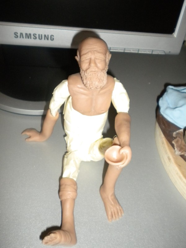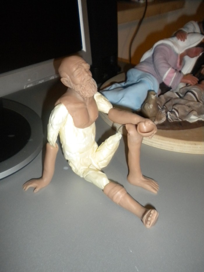 La statuina che ha fatto è bellissimo, per vestire vi consiglio di utilizzare dei vestiti vecchi o stracciati e con qualche sporcizia, come si vedono i barboni che sono in giro per la strada. Poi mi farai sapere come procederai alla vestizione. |