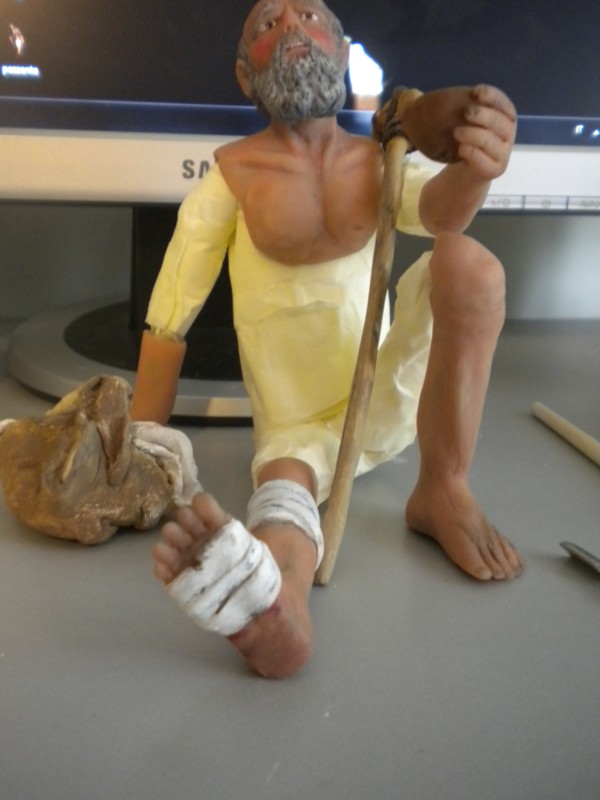 Ciao Salvatore, complimenti sempre piu belle le tue opere.    Secondo me dovresti vestirlo con abiti vecchi molto usati con delle toppe magari che dimostrino la sua povertà ma senza togliergli la sua dignità.