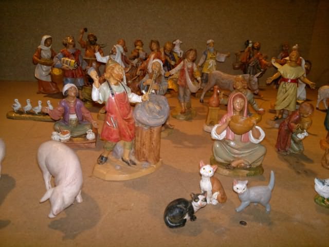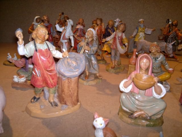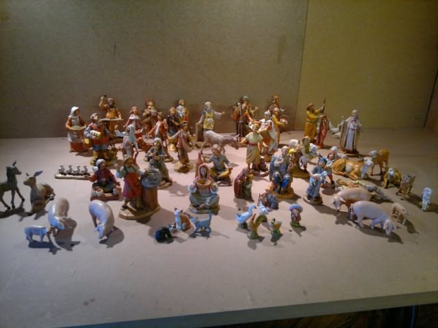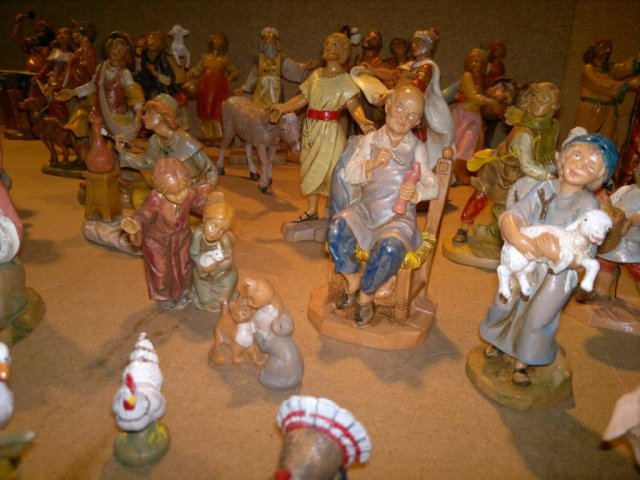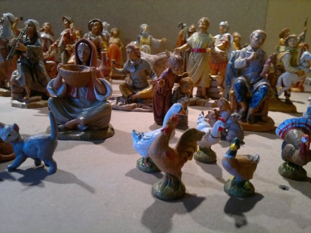 Statue in resina Fontanini (tipo legno) da cm12, vendo causa inutilizzo, sia singolarmente che tutte in blocco. Le statue sono per la maggior parte pari al nuovo e in perfette condizioni, ad alcune sono state tagliate le basi per poterle meglio adattare al terreno. Si suddividono nelle seguenti categorie: 2 famiglie di maiali ciascuna composta da 4 pezzi, (7euro cad.) 1 famiglia di asini composta da 3 pezzi, (10euro) 1 famiglia di gatti composta da 1 pezzo, (4euro) 1 famiglia di vacche composta da 3 pezzi, (10euro) 1 famiglia di pecore composta da 3 pezzi, (3euro) Gallinacei composti da 5 pezzi, (10euro) Famiglia oche (non Fontanini di cui una senza piedistallo) composta da 5 pezzi, (3euro) Famiglia di oche composta da 1 pezzo, (3euro) 3 gatti, (1euro cad.) 1 capretta, (1euro) 1 asino in piedi (5euro) Coppia di bambini senza piedistallo (Edizione speciale), (6euro) 23 statue varie, (6euro cad.) 6 statue varie senza piedistallo, (4euro cad.) I prezzi tra parentesi sono per i pezzi venduti singolarmente, per l’acquisto in blocco il prezzo è di 200 euro. Gli interessati possono contattarmi tramite mail per ricevere altre informazioni o foto più dettagliate.