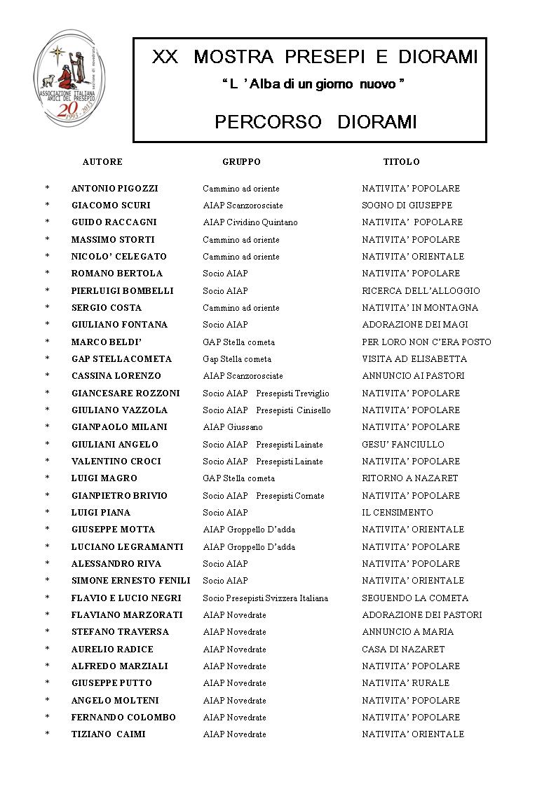 Percorso Diorami XX Mostra