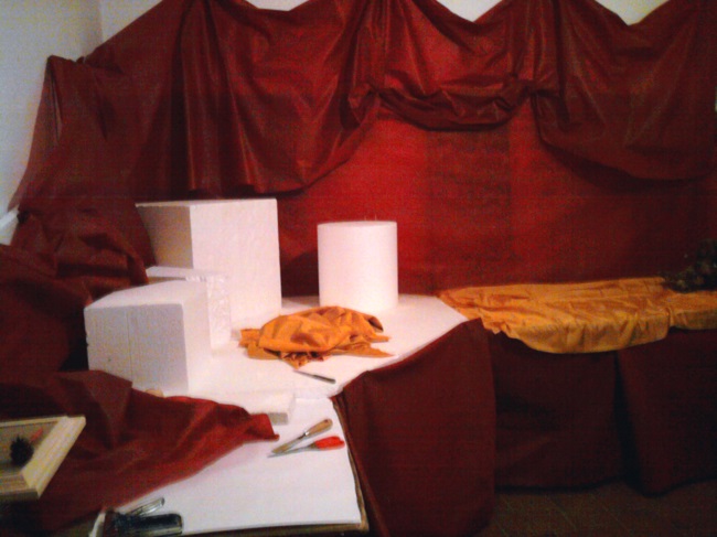 paola con i drappeggi ci sa proprio fare, io imbranatissimo con la pinzatrice aspettavo che lei mi dicesse dove mattere le spille :D kmq romano c'è mancato poco che nn mi portassi a casa il tuo lavoretto eheh ogni momento di pausa ero lì che me lo studiavo :D |