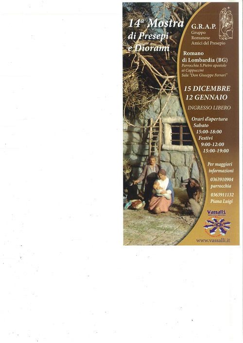 Ciao a tutti vado a postare una locandina della mostra presepi a Romano di Lombardia (BG) Dell'amico Piana Luigi,per chi fosse nel bergamasco questa è un'altra delle mostre da non PERDERE.