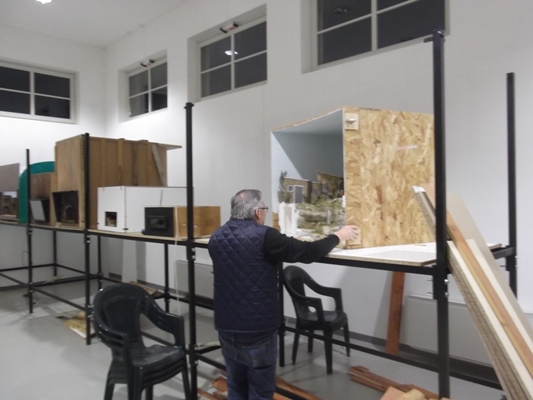 Mio padre che sistema un presepe dell'amico Mauri....