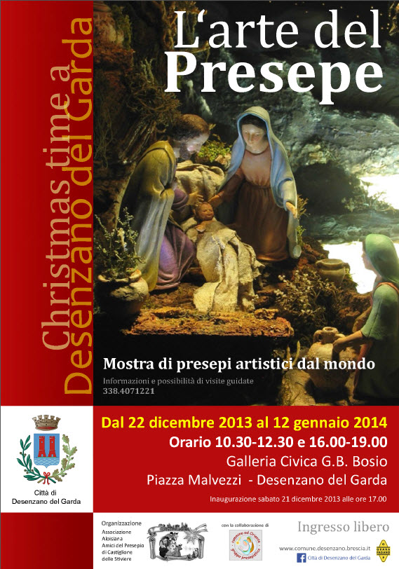 Cari amici, qui sotto trovate la locandina della 2a iniziativa del nostro gruppo per questo Natale 2013, dopo la mostra di Montefiorino (Mo) saremo presenti anche a Desenzano (Bs), in riva al lago di Garda, con una mostra di presepi e diorami realizzati dagli artisti del gruppo e da alcuni artisti amici, ospitata presso la galleria Civica situata in pieno centro storico e in riva al lago, nella centrale Piazza Malvezzi. L'evento è organizzato con l'Associazione Aloisiana Amici del Presepio di Castiglione delle Stiviere (Mn), con i quali collaboriamo ormai da alcuni anni, quest'anno quindi non troverete la mostra a Castiglione delle Stiviere ma a Desenzano (Bs) come sempre vi aspettiamo per una visita!