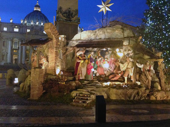 SAN PIETRO Per il primo anno sulla Piazza di San Pietro è stato esposto un presepe napoletano con statue a grandezza naturale