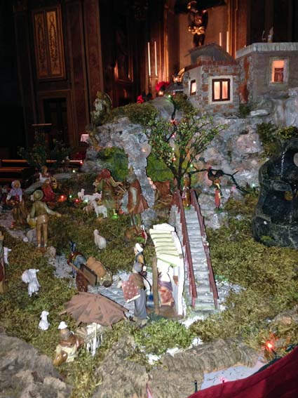 inserisco io una foto del presepe nella Chiesa di San Marcello perchè, anche se la foto fa pena (rubata col telefonino...) il Presepe merita di essere visitato (per chi può) o quantomeno di essere visto in foto