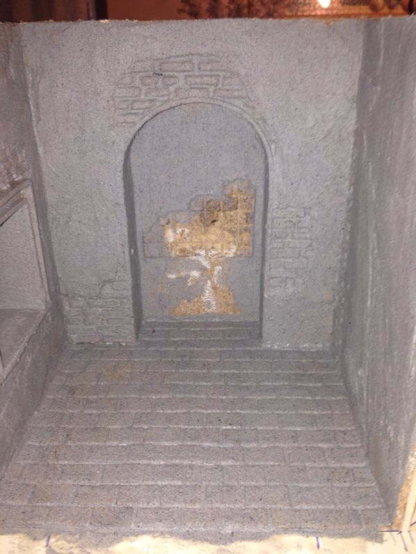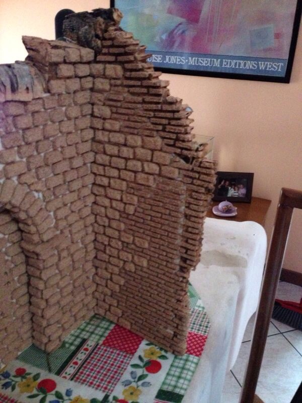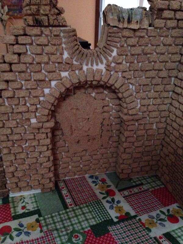 Molto bello . Ma come fai a fare i mattoncini tutti uguali ? Ti posso chiedere con cosa hai coperto il sughero . Solo gesso o miscuglio ? |
