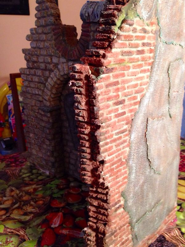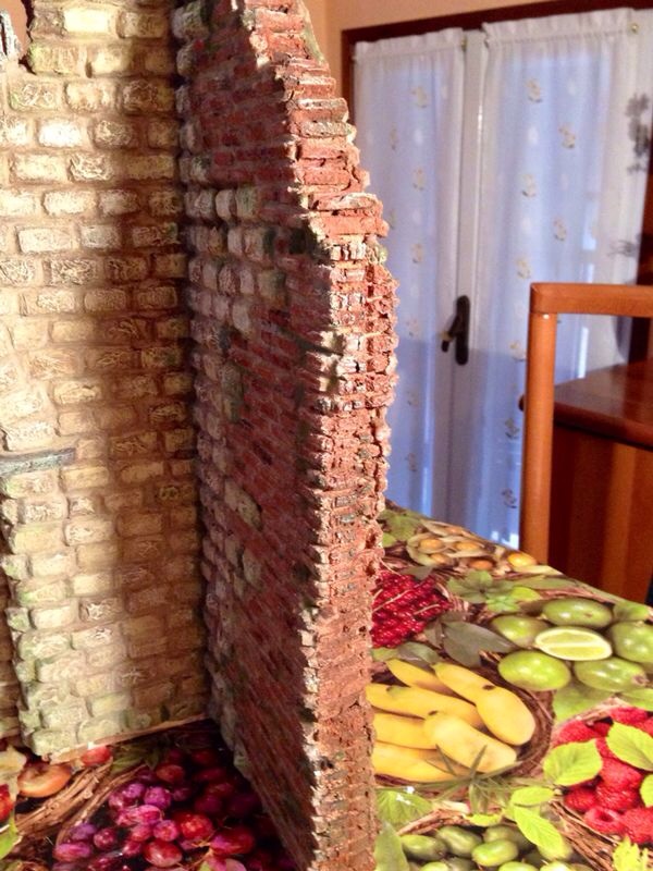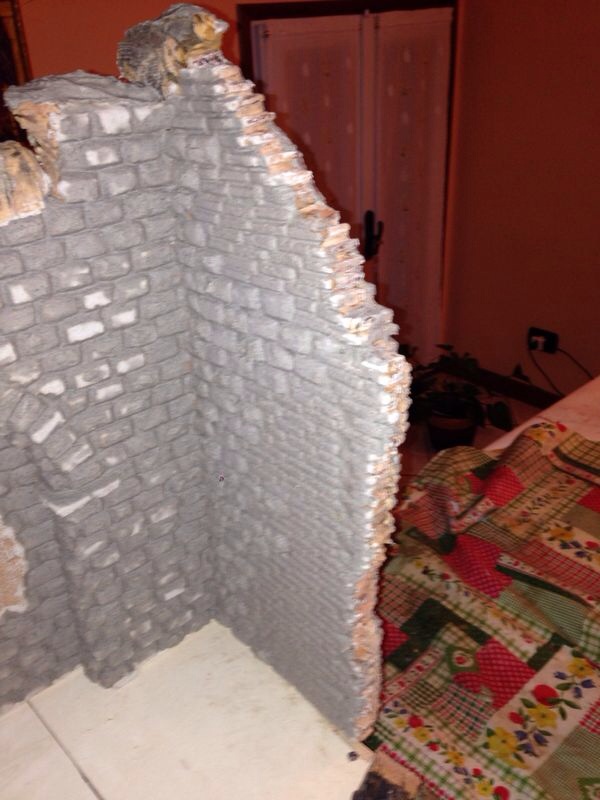 Grazie a tutti x i complimenti no questo e un pezzo di un lavoro più grande e farà parte della natività che per comodità x stuccarlo e colorarlo li faccio staccati poi li assemblo insieme. Pas non riesco a capire x i mattoni sono tutte striscioline da 0,5x2,5 poi li attacchi ad uno ad uno con colla a caldo poi con la raspa e la spazzola di ferro li lavori alcuni li rompi alcuni non li mette e gratti bene gli angoli x farli sembrare più usurati.poi stucchi e alla fine la colorazione: mano di fondo mordente poi prima passata sempre a pennello asciutto ocra gialla ocra rossa terra di siena bruciata , seconda passata ocra gialla ocra rossa terra di siena naturale quest'ultima un po' di più con questa mano vai solo a sfumare . Poi zone umide tra le fughe e anche sui mattoni fai verde vescica più una goccia di terra ombra naturale ma la allunghi con l'acqua . Alla fine per differenziare un po' i mattoni per far vedere alcuni più cotti altri più sporchi prendi della cenere e sporchi alcuni mattoni altri li sfumi leggermente con giallo di Napoli . Spero di esserti stato utile . Ciao a tutti |