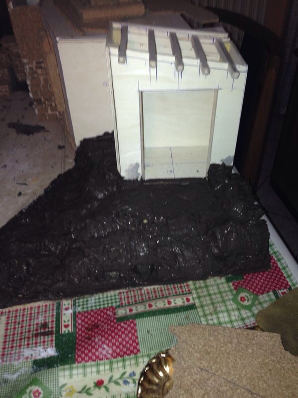 Non si vede della foto romano e roccia fatta con sughero a pelle di coniglio e poi colorata con ombra naturale. Fa schifo?ciao romano |