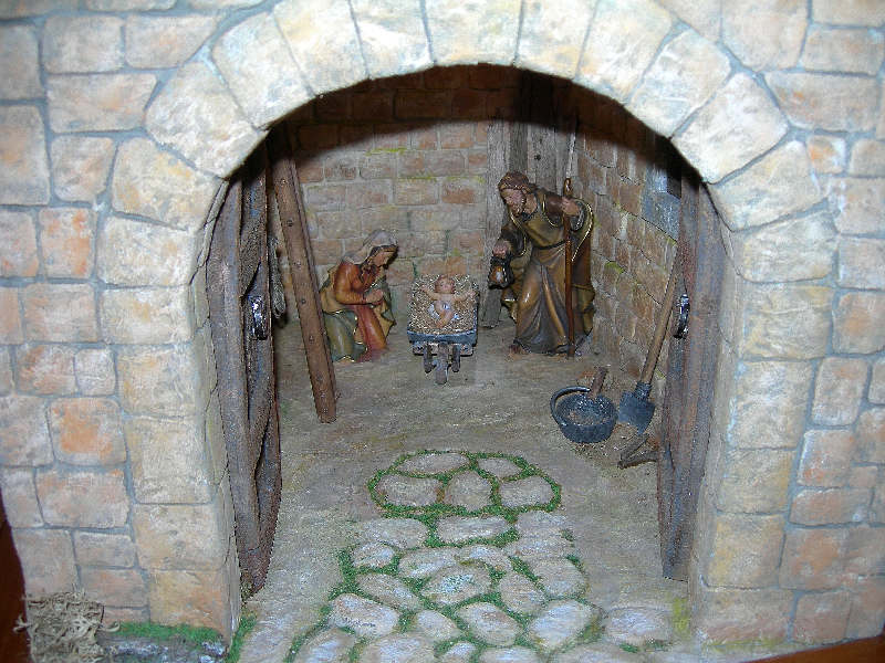 Visto che ora il momento è un po piu tranquillo vi posto un piccolo presepe realizzato per casa mia, misura cm 40 x cm 45 con una Nativita di 12 cm della Val Gardena. Le foto purtroppo quando le ridimensiono perdono di qualita ed alcune sono con il flash altre senza.