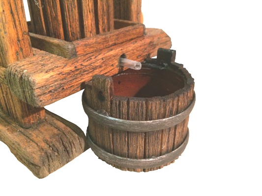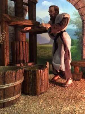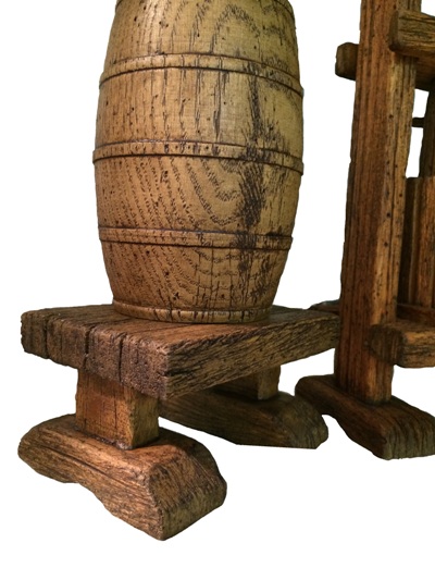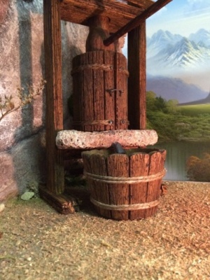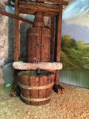 Ciao a tutti e ben ritrovati... ho realizzato in questi mesi alcune cose tra cui una serie di oggetti in legno da inserire in una scenografia di una cantina. Per quanto riguarda il "Torchio" ne ho realizzati due in legno ed erogano realmente del vino tramite una pompetta nascosta, l'altezza è di circa 40cmm..uno però è leggermente più piccolo e la vasca non è in pietra...