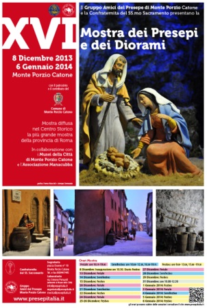 Ciao, in questo Natale 2014 un nucleo di opere degli artisti del nostro gruppo sono presenti anche in Lazio grazie alla collaborazione degli amici di Sora (Frosinone) e Monte Porzio Catone (Roma), che hanno voluto la nostra presenza alle loro esposizioni presepistiche. Siamo molto felici che le nostre opere possano essere ammirate anche in una regione per noi nuova e invitiamo tutti a visitare queste due belle mostre, a presto