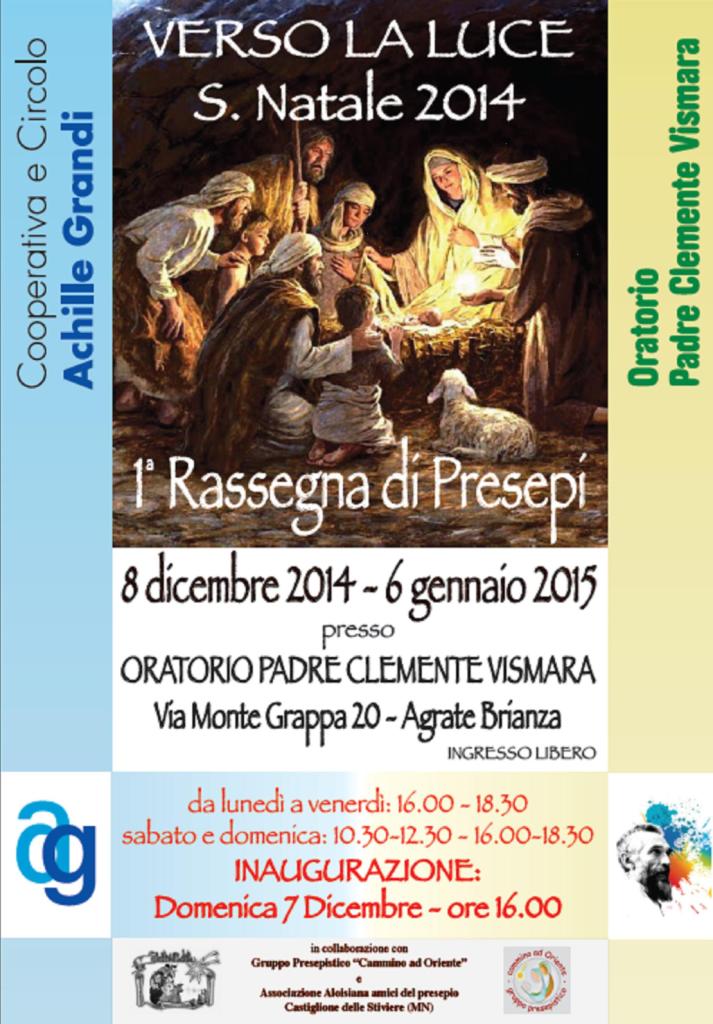 domenica 7 dicembre alle 16 aprirà infatti i battenti la prima edizione di "Verso la Luce" rassegna di presepi ad AGRATE BRIANZA (MB). La mostra, ospitata presso i capienti locali del centro parrocchiale "Padre Vismara", è organizzata dalla Cooperativa "Achille Grandi" in collaborazione con l'Associazione Aloisiana Amici del Presepio di Castiglione delle Stiviere (Mn), sodalizio con cui il nostro gruppo collabora fin dalla sua nascita. Potrete trovare scelte opere create dai membri del nostro gruppo, la mostra è aperta fino al 6 gennaio, vi aspettiamo!! a breve altri aggiornamenti sulla nostra attività per il Natale 2014, a presto!
