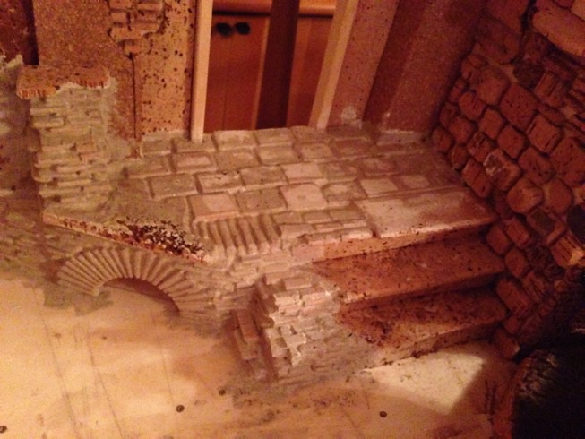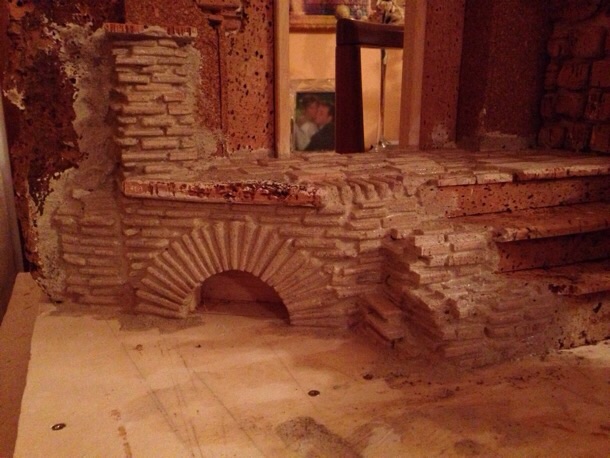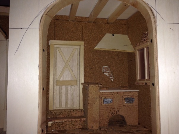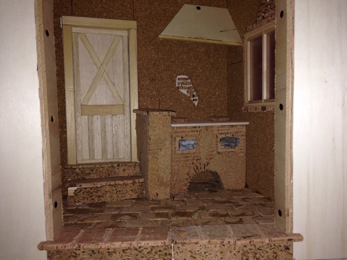 Cominciamo a rivestire la parete esterna locanda. Qui in questo caso i mattoni alcuni li ho incollati ad uno ad uno e altri li ho lavorati da un pezzo di sughero e altri da pelle di coniglio e lavorati con taglierino e Lima . Alla prossima