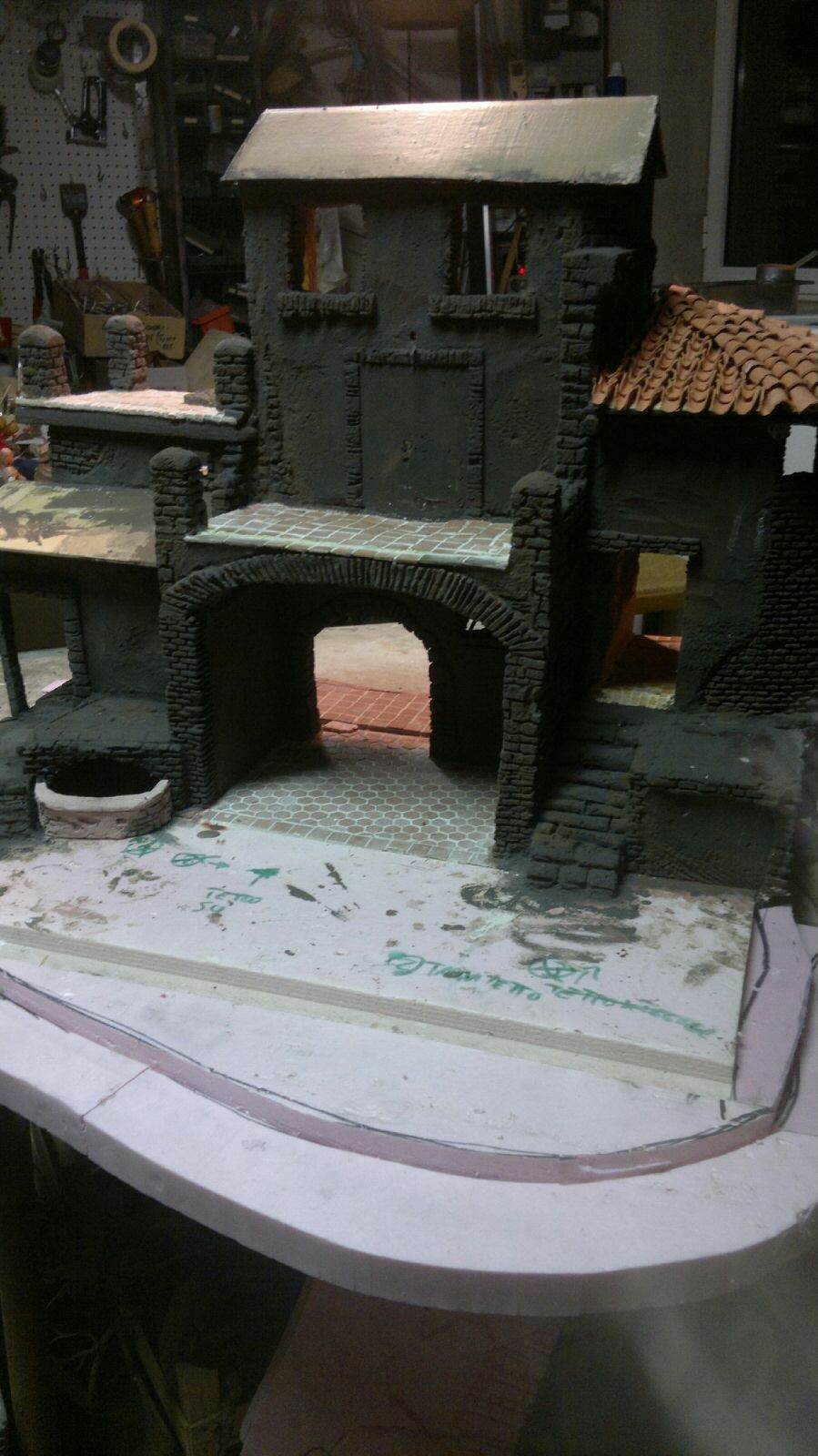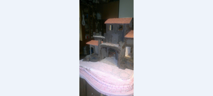 63,92 KB[font=Comic Sans MS][/font=Comic Le tegole sono fatte con il das, devo ancora fare la pavimentazione davanti... ho gia' dato la mano di stucco e colla e la base scura.. sto cercando un buon metodo per dipingere le tegole ed i muri interni delle delle case.. stasera faro' altre foto , aspetto consigli, sono la mia fonte per andare avanti, grazie.
