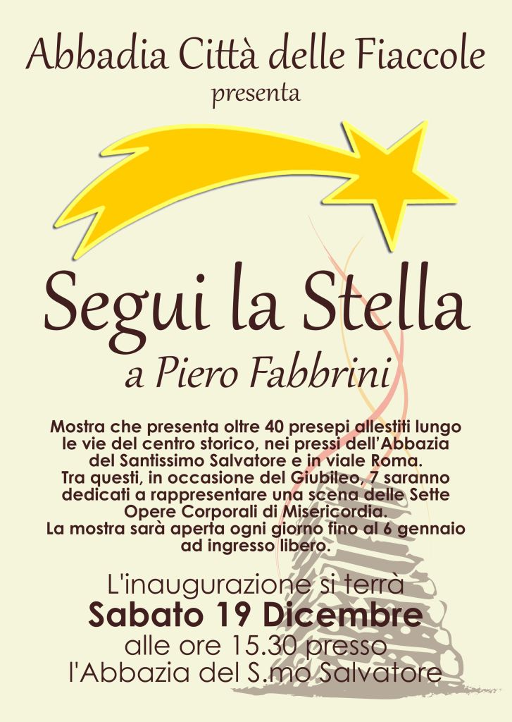 Salve a tutti, vi informo che dal 19 Dicembre al 6 Gennaio è aperta la Mostra del Presepi "Segui la Stella" ad Abbadia San Salvatore(Siena). Si tratta di una mostra itinerante per tutto il centro storico e nella zona dell'Abbazia del Santissimo Salvatore, ogni punto presepe è segnalato con una stella cometa. Visto l'inizio del Giubileo, all'interno della mostra ci sarà un percorso di 7 presepi che rappresentano le 7 opere di misericordia corporale.