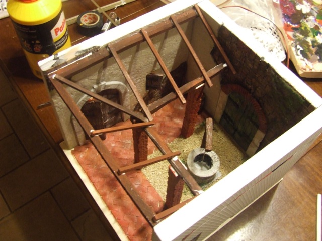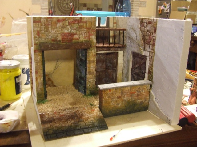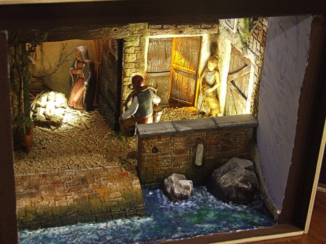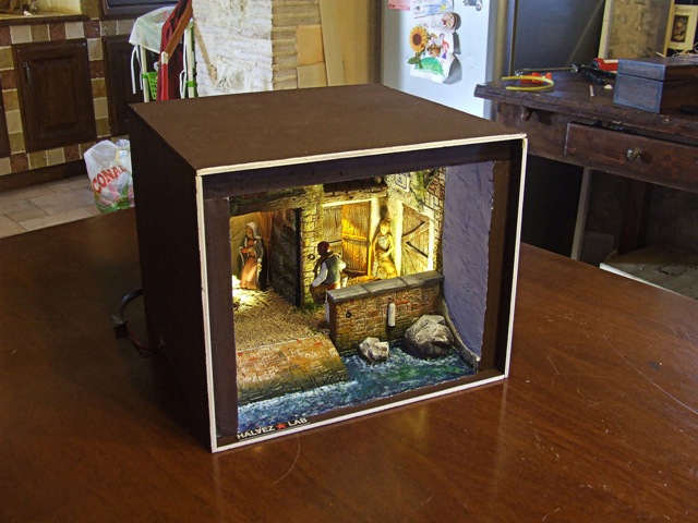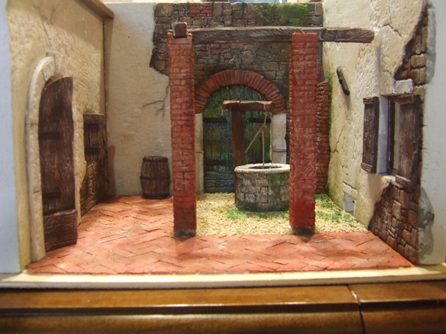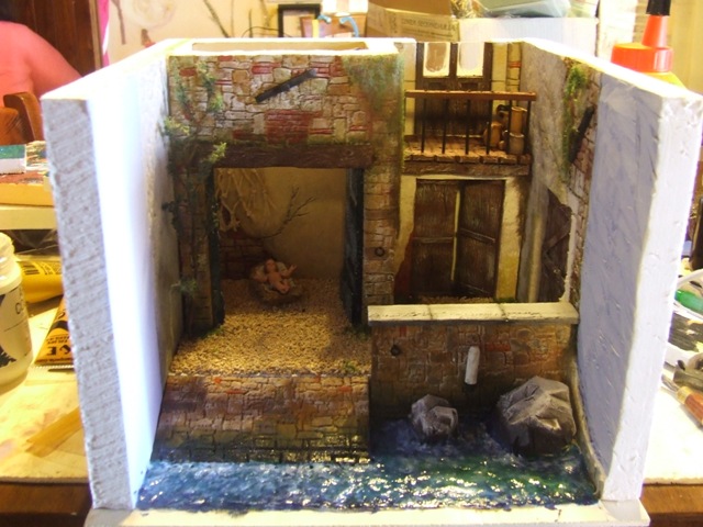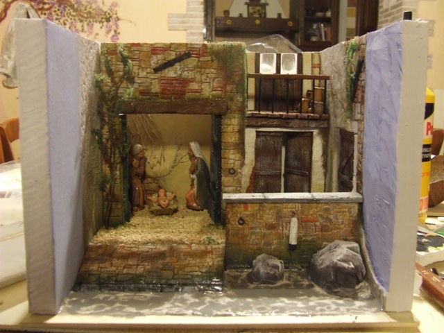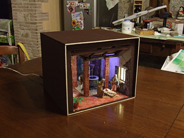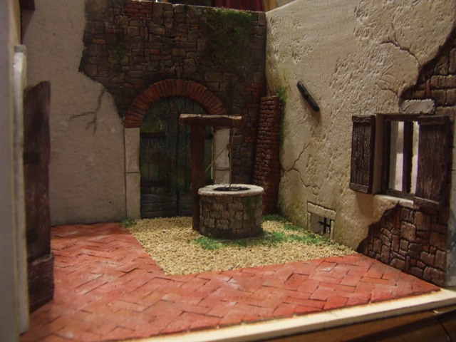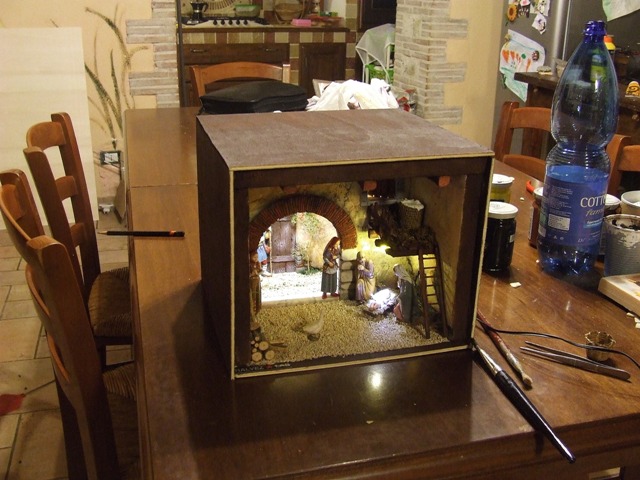 grazie a tutti per daniele 70 la profondita' e 27 circa e le statuine sono si da 10 rifilate alla base,continuiamo con il christmas box n4 "riparo nel cortile"