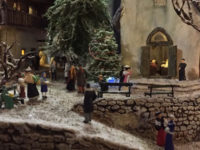 sono lieto di presentarvi la mia nuova piccola creatura ispirata al giorno di Natale. Nello specifico si tratta di un'opera che vuole comunicare l'atmosfera del Natale in un villaggio di montagna nello stile nord europeo in epoca primi novecento. Le dimensioni dell'opera totale è di 35 cm di diametro - A tutto tondo. Ho installato tutta la creazione sul piatto girevole in legno dell'Ikea. I personaggi misurano circa 1,8 cm. spero possiate godere dell'emozione e DIO Benedica la vostra vita in questo 2016.