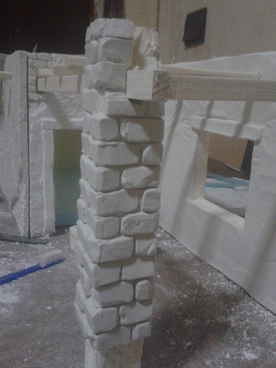 Maestri ho proseguito i lavori, dedicandomi al pilastro. Ora pero' guardandolo bene, mi da l'impressione di nuovo, cioe' di un pilastro moderno. Poi guardando anche le pareti della casa, che sono fatte con l'intonaco, secondo voi, ci sta bene quel pilastro? Oppure e' meglio se faccio l'intonaco anche al pilastro, e in qualche punto, simulo la rottura dell'intonavo e ci lascio i mattoncini. Grazie in anticipo.