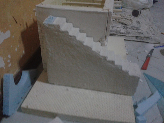 Ora vorrei farci una passata con il gesso, per dargli quell'aspetto di pietra, che ne pensate? Poi altra coisa, vorrei inserirci dentro, un led quelli da 3 mm effetto fuoco. Secobndo voi puo' sciogliere il poolistirolo?