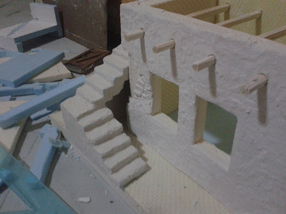 per la scala la puoi attaccare direttamente col gesso... bagni con acqua la superficie già gessata della casa, metti il gesso fresco tra la scala e l'intonaco e così usi il gesso come colla! Per la lampada, mi piace, credo che un po' di gesso su non guasti... con i led non ho esperienze ma credo che non dovrebbero arrivare a temperature tali da sciogliere il polistirolo. Buon lavoro! |