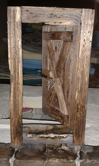 La porta per il momento e' solo appoggiata, la devo pittuare e poi la incollo. Pero' avrei un paio di domande, secondo voi, se l'architrave della parete, la faccio in legno? Al posto della cornice di pietra? Poi altra domanda, ho letto in rete che non avevano vetri alle finestre, ma solo grate di ferro, qualcuno ha qualche idea di come posso realizzare una grata di ferro? O secondo voi, se ci faccio due sportellini di legno, senza vetro all'interno, andrebbe bene lo st4esso?