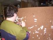 ottiche nei forellini delle stelle e fissiamo il tutto sul pannello di masonite agendo in